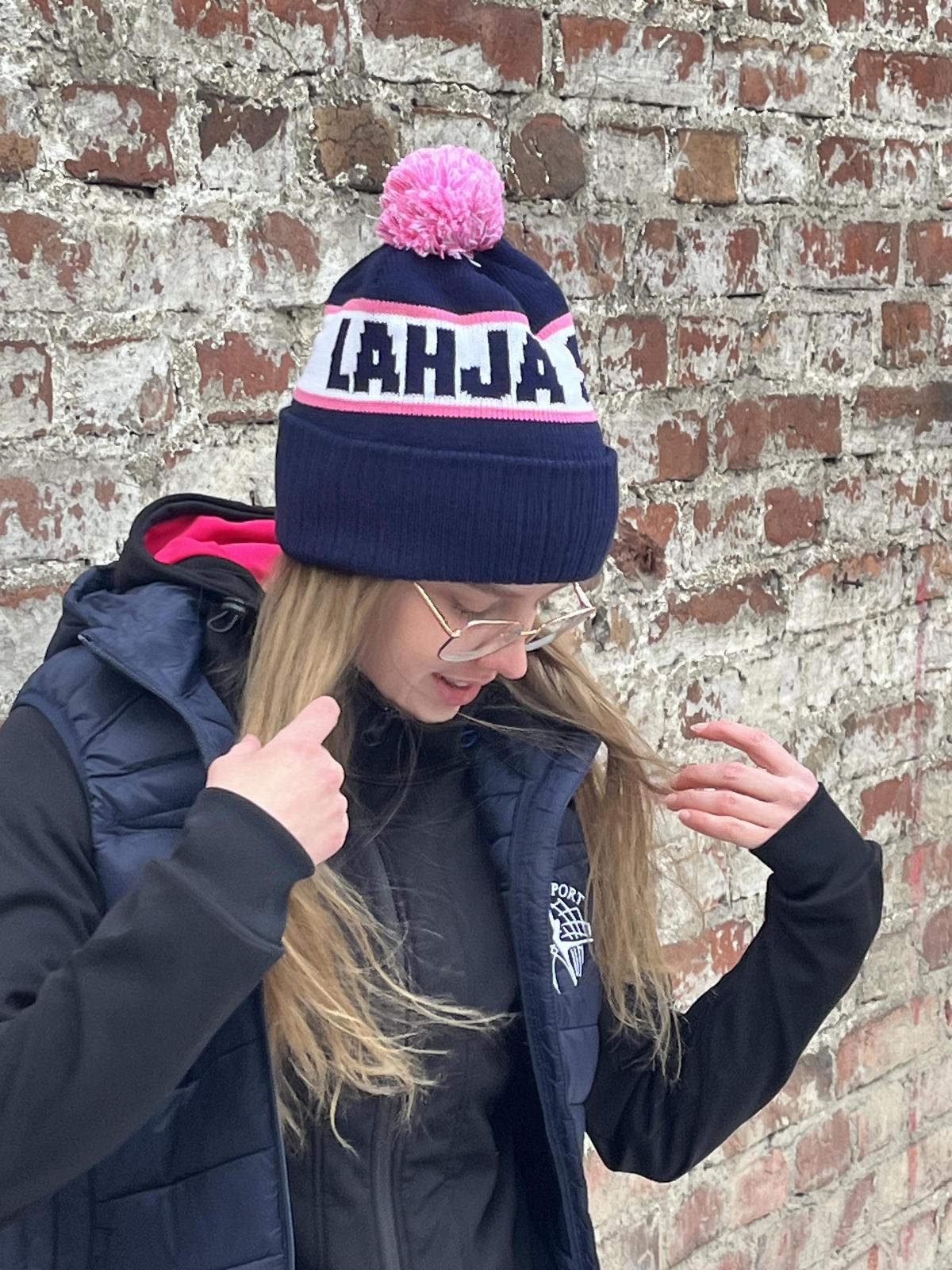 Pinkki kannustuslippu Lahja Sport -logolla