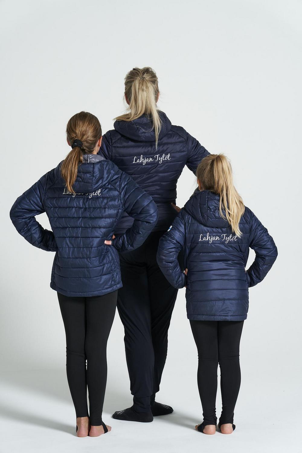 Slonnyn Lahja Sport-logolla varusteltuja pooloja ja t-paitoja sekä Craftin tummansinisiä kevyttoppatakkeja tilataan aina syyskauden sekä kevätkauden alussa.