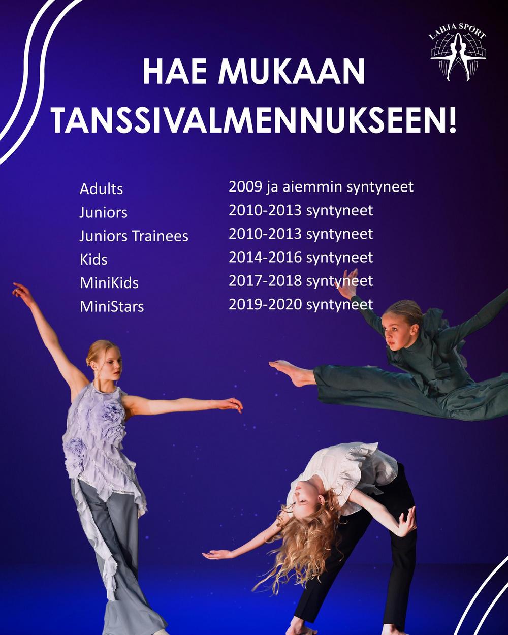 Juniors Trainees sekä Juniors treenaavat kolmena päivänä viikossa eri tanssilajeja: voit tulla kokeilemaan yhtä tai useampaa tuntia viikon aikana